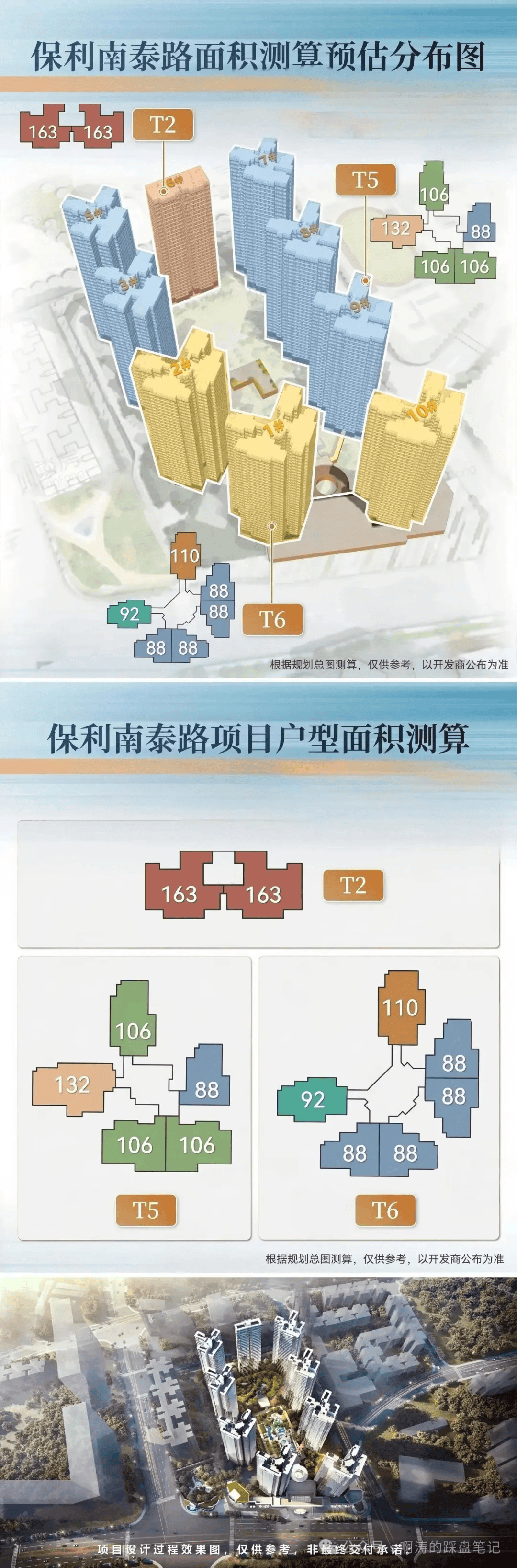 结合土地规划指标与海珠西购房需求,保利南泰路地块定位为刚改与改善型项目,产品以全南向户型为主,采用塔楼+板楼组合形态,其中板楼作为楼王产品,主打高端改善需求,塔楼则覆盖刚改群体,整体户型面积跨度为88-163平,三房两卫起步,满足不同家庭的居住需求。